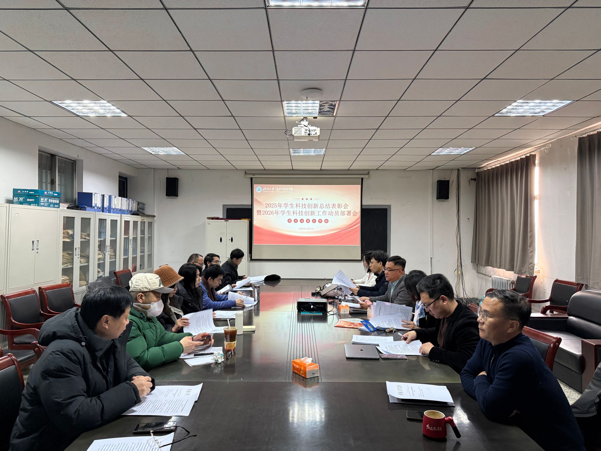 开展了2025年学生科技创新总结表彰会暨2026年学生科技创新工作动员部署会,学院全体领导班子成员、各系室主任、赛事专业负责人和学院团委负责人参加了本次会议。会议由学院党委副书记、副院长何贵亮主持。
