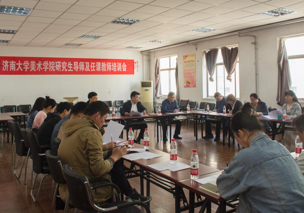 4月18日,美术学院举办了研究生导师及任课教师培训会,学院党委书记孙成豪、常务副院长陶国平、副院长赵忠超及美术学院研究生导师、任课教师、研究生管理办公室、学生工作办公室相关教师参加了本次培训会。